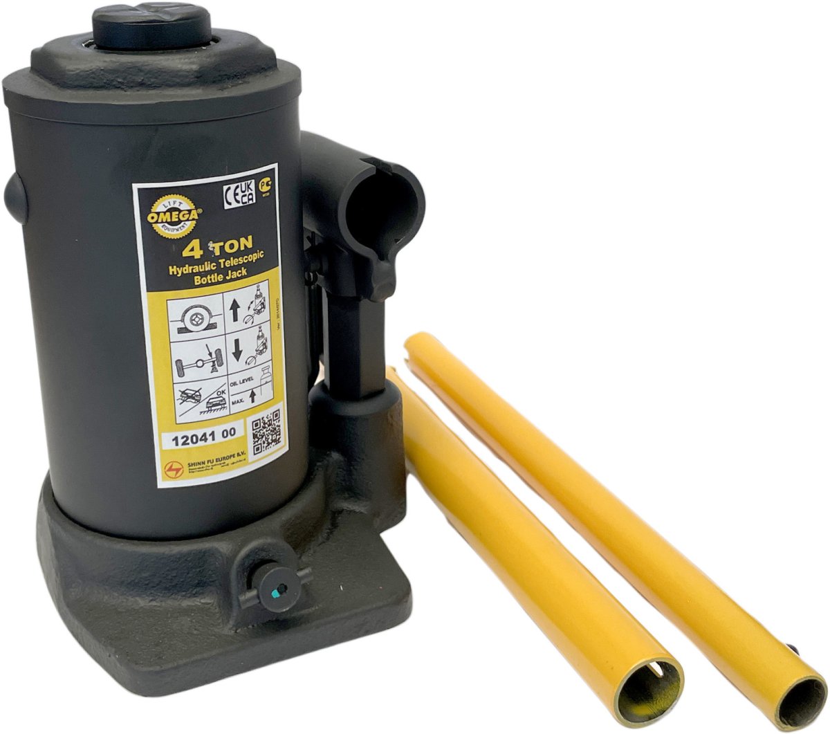 Lyftkapacitet 4 ton. Kompakt konstruktion med spindelförlängare för optimal användning av slaglängden. 2-delat pumphandtag.